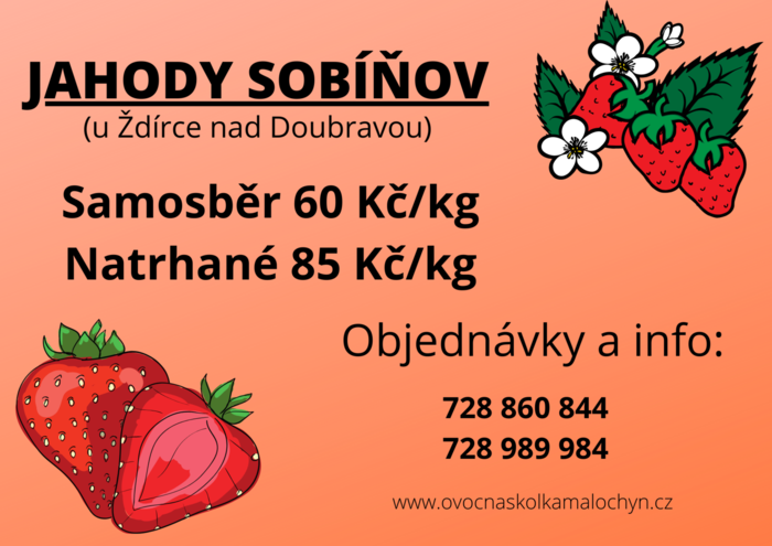 Samosběr jahod v obci Sobíňov u Ždírce nad Doubravou